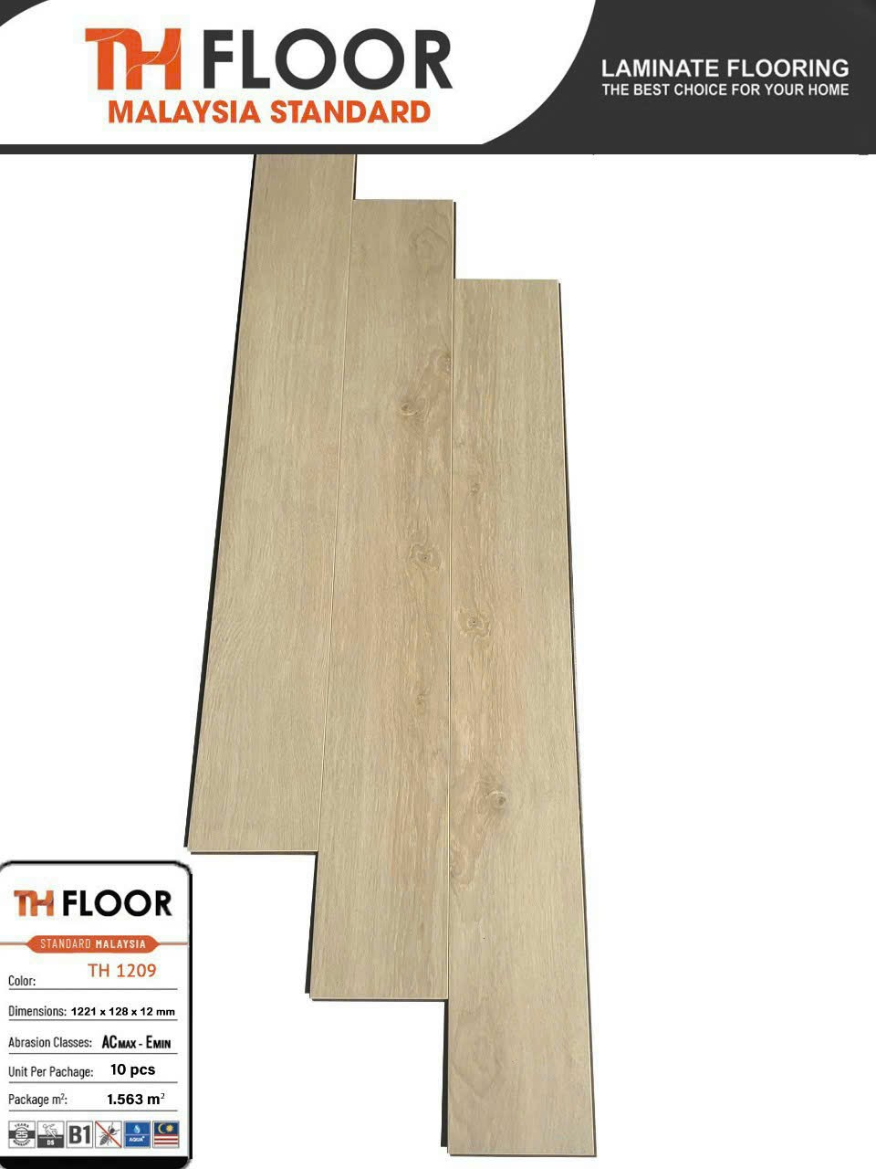 Sàn gỗ công nghiệp TH Floor được sản xuất với quy cách sản phẩm. Ván sàn 12mm bản nhỏ, kích thước 1223 x 132 x 12mm. Bề mặt sần, cạnh V, hệ hèm khóa liên kết Singer Click, là loại hèm khóa rãnh nhỏ. THfloor có đầy đủ các gam màu như: Nâu, đỏ, xám, ghi, đen, cánh gián… đó đều là các gam màu cơ bản, dễ chọn. Nó phù hợp với phần động của thị trường, các gam màu này dễ phối đồ. Có thể tự mua về để kết hợp với đồ nội thất, không cần đến tư vấn thiết kế.