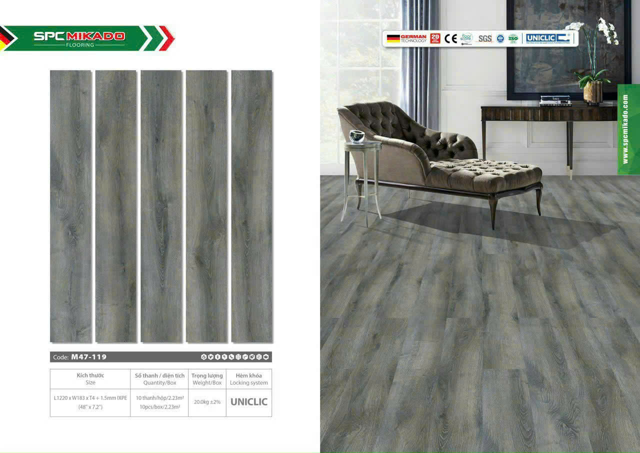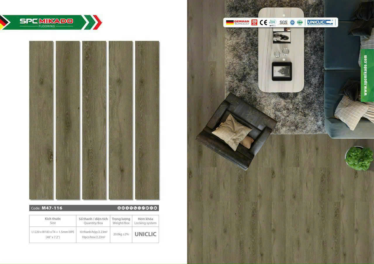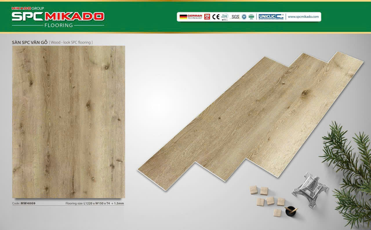 Ván sàn SPC MIKADO hèm khóa là dòng sản phẩm thân thiện với môi trường, không chứa các chất độc hại như Formaldehyde. Ván sàn SPC 100% không thấm nước, chống cháy, chống trầy xước, không cong vênh, không co ngót và chống trơn trượt, thân thiện với môi trường an toàn cho người sử dụng.